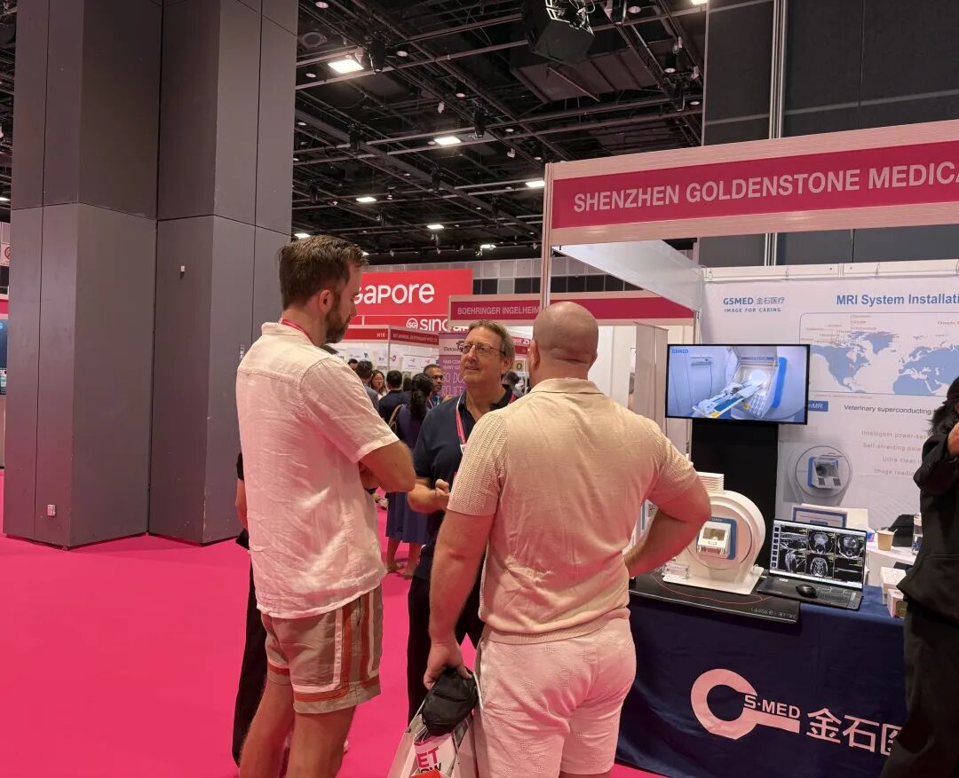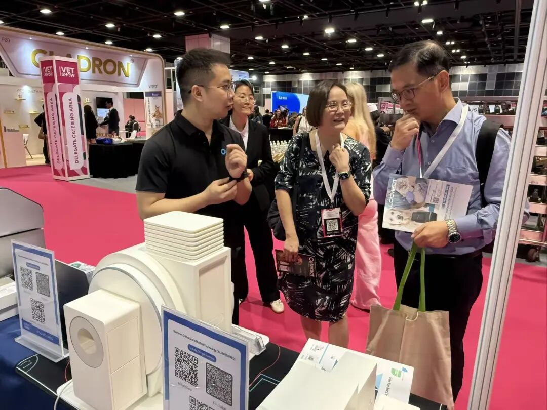 金石医疗的展台自开展以来便人头攒动,来自多个国家的兽医机构代表、设备经销商纷纷驻足,通过产品演示视频、技术人员一对一讲解等方式,深入了解 1.5T vPetMR 和vMinMR动物专用超导磁共振的性能优势。据金石医疗参展负责人介绍,此次展会收到多项合作咨询,后续将针对不同区域市场的需求,提供定制化的产品服务方案,推动中国高端动物医疗设备走向全球。